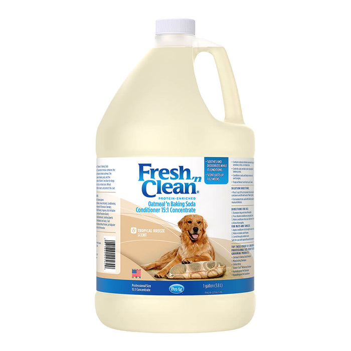 Fresh 'n Clean Oatmeal and Baking Soda Conditioner combines the soothing aid of natural colloidal oatmeal, the deodorizing power of baking soda, and the hydrating benefits of Vitamin E and Aloe for dogs with sensitive, itchy, or irritated skin. Wheat protein strengthens, repairs, and protects the coat.