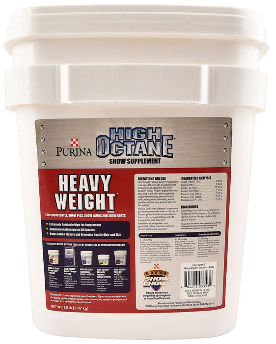 Purina HIGH OCTANE Heavy Weight Topdress is an extremely palatable high-fat supplement providing supplemental energy. Helps to soften muscle and promotes healthy hair and skin.