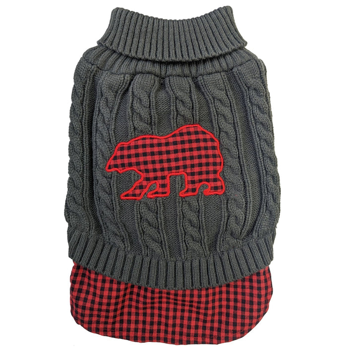 Indulge your pup in classic style with our Un-tucked Plaid Sweater, a delightful twist on the traditional cable sweater. Adorned with a charming buffalo check pattern, this sweater exudes rustic charm, making your furry friend look cozy and adorable. The addition of a bear applique adds an extra touch of character, perfect for embracing the winter season in style. The fold-over collar not only keeps your dog warm but also adds a touch of sophistication to their appearance. Plus, the convenient leash hole ensures that walks remain comfortable and practical.