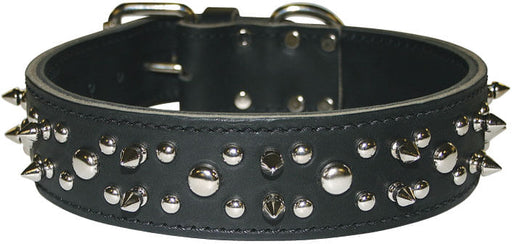 View full details21" Latigo Leather Spike & Stud Dog Collar2" wide, 21" long, 2-ply spiked & studded collar. 1/2" nickel-plated solid steel spikes permanent...