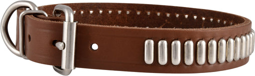 Bully Leather Brown Dog Collar with Oblong Studs, 1"W x 23"L