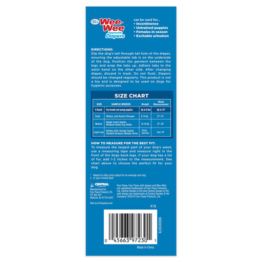 Wee-Wee Disposable Dog Diapers Keep your dog dry and your home clean with Wee-Wee Disposable Dog Diapers. These highly absorbent diapers are desig...