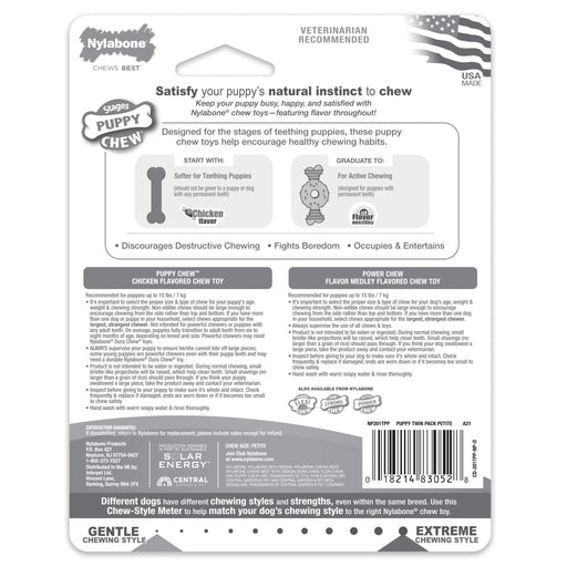 Nylabone Puppy Starter Kit (3 pieces) Perfect for the teething puppy in your life. Kit contains: (1) flexible puppy bone chew toy (1) Healthy E...