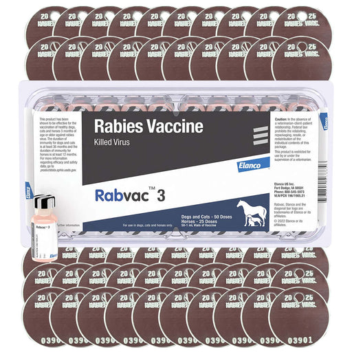 RabVac 3 Rabies Vaccine, No Tags RabVac 3 is a killed virus rabies vaccine indicated for use in healthy dogs, cats, and horses 3 months of age or o...