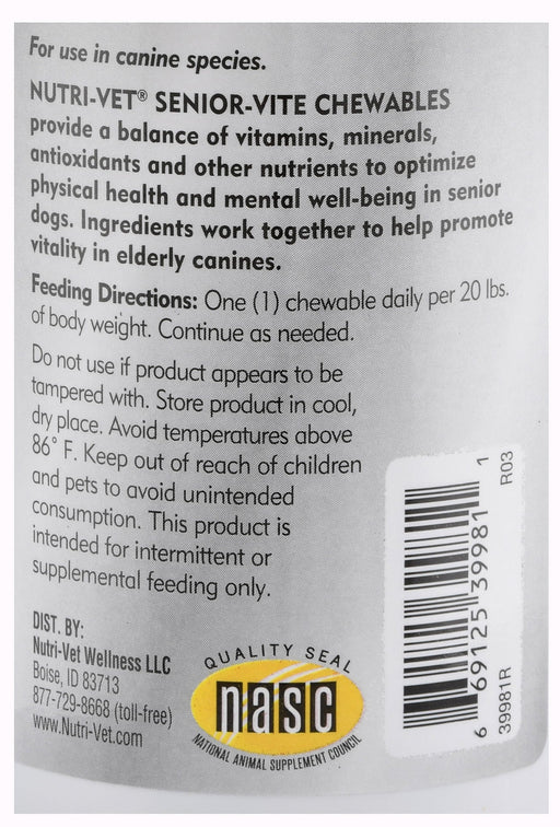 Nutri-Vet Senior-Vite Chewables Nutri-Vet Senior-Vite Chewables is a senior vita-lit multivitamin complex that provides a balance of vitamins, mine...