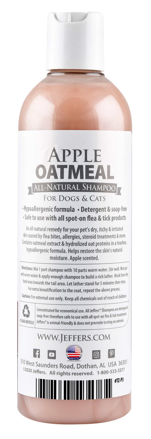 Jeffers Apple-Oatmeal Natural Pet Shampoo for Dogs and Cats Jeffers Apple-Oatmeal Pet Shampoo is an all-natural, tearless formula designed to sooth...