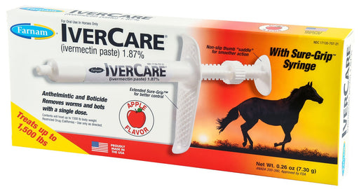 Durvet Ivermectin Horse Dewormer Paste 1.87%, Apple Flavor, 6.08 gm Features: Apple flavor that horses love! Removes worms and bots with a s...