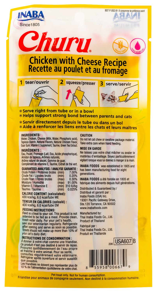 Churu Chicken with Cheese Puree Lickable Cat Treat, 4 pk Churu Purees are tasty, squeezable, low calorie, lickable cat treats made with 100% pure a...