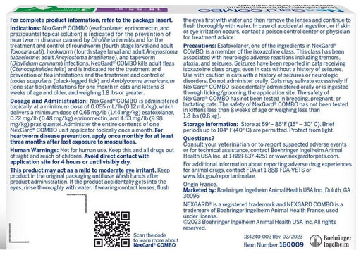 Nexgard Combo Topical for Cats NexGard COMBO Topical for Cats is a comprehensive solution featuring esafoxolaner, eprinomectin, and praziquantel...