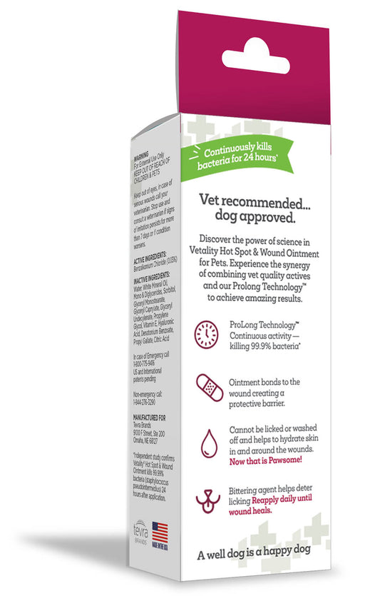 View full detailsVetality Hot Spot + Wound Ointment for Pets, 2.5 oz FEATURES: Ointment bonds to the wound creating a protective barrier. Cannot be licked ...