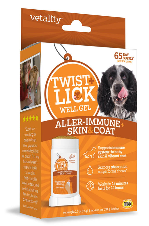 View full detailsTwist & Lick Aller-Immune and Skin & Coat Supplement, 2.3 oz FEATURES: Naturally works faster than chews Continuous release with...