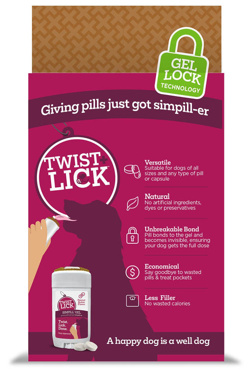 View full detailsTwist & Lick SimPill, Peanut Butter Flavor, 2.3 oz FEATURES: Pills go on and won't come off Works with pills of all sizes 30-60 p...