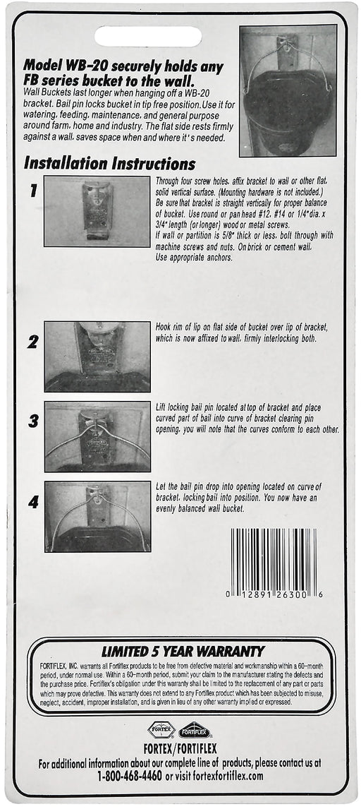 Bucket Hanging Wall Bracket #WB-20 The Bucket Hanging Wall Bracket is designed to securely hold Fortiflex® flatback buckets against walls, fences, ...