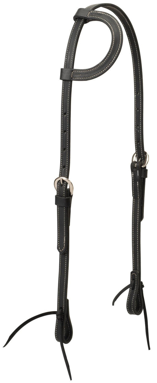 View full detailsBlack Latigo Leather Sliding Ear Headstall Some black leather tack can be a bit stiff, but not this sliding ear headstall! Made in a classic, singl...
