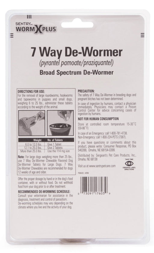Sentry WormX Plus 7 Way Dog Dewormer WormX Plus 7 dewormer for dogs is Pyrantel Pamoate and Praziquantel for the control of roundworms, hookworm...