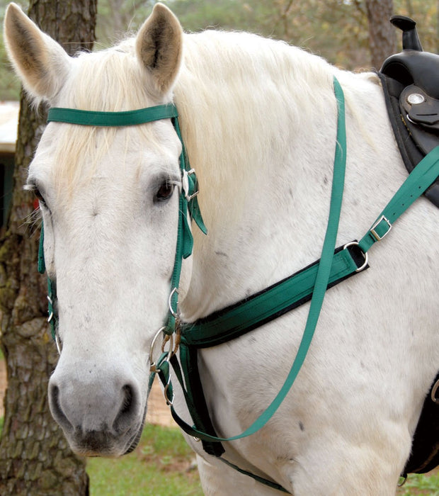 1" nylon bridle comes with 6" o-ring bit and 7" split reins.