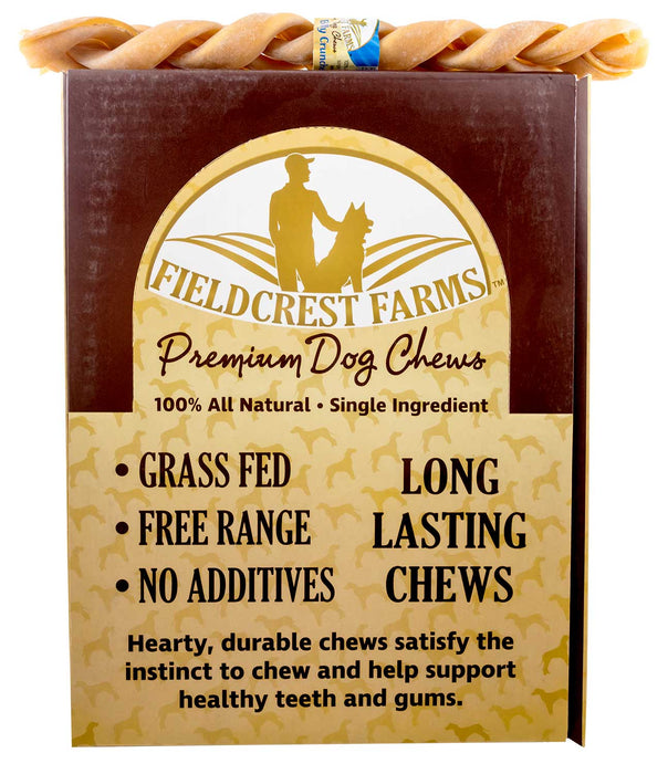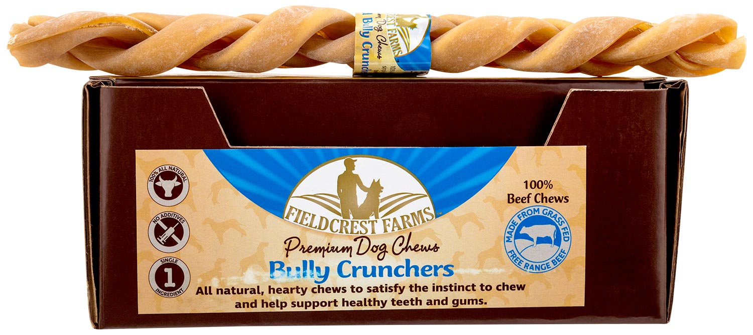 Fieldcrest Farms Braided Bully Crunchers Dog Treats, All-Natural Long-Lasting Chew, Grass-Fed Beef, Single Ingredient, Odor-Free