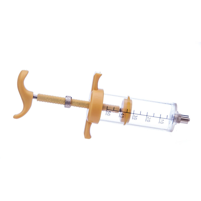 The Jeffers Nylon Syringe is a durable, unbreakable syringe designed for reliable, repeated use in veterinary or livestock care. Typically used for livestock, large animals, dogs, and cats it is made from high-quality nylon with etched mL markings that won’t rub off. It supports both Luer lock and Luer slip needle attachments for versatile use. Designed for smooth, one-hand operation, this syringe is autoclavable up to 150°C (302°F) for easy sterilization. Includes a plastic plunger rod and is compatible with replacement O-rings (sold separately) for extended life.