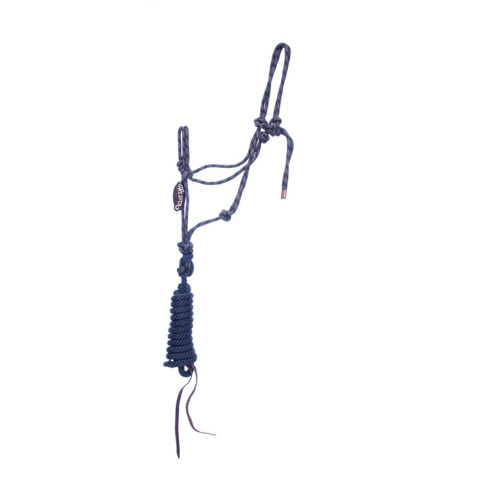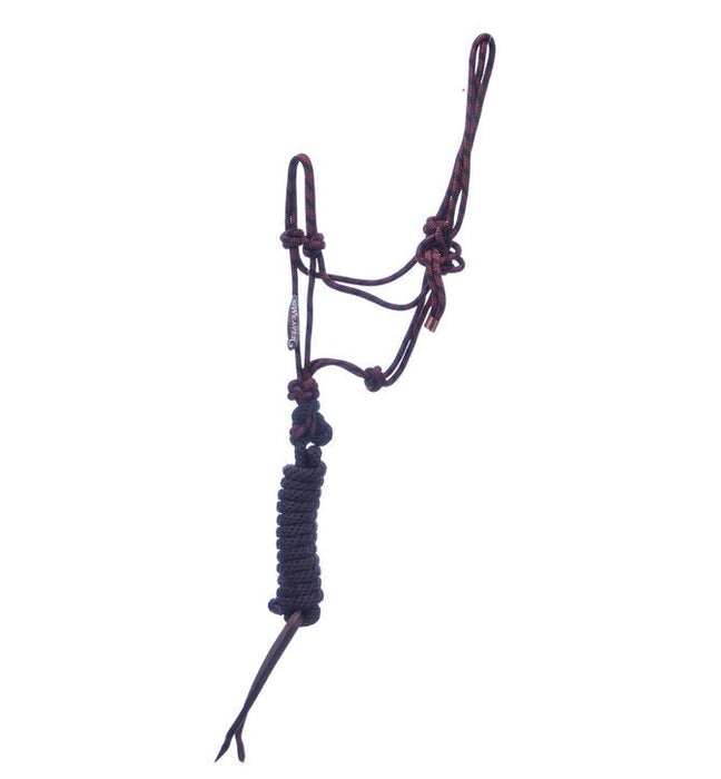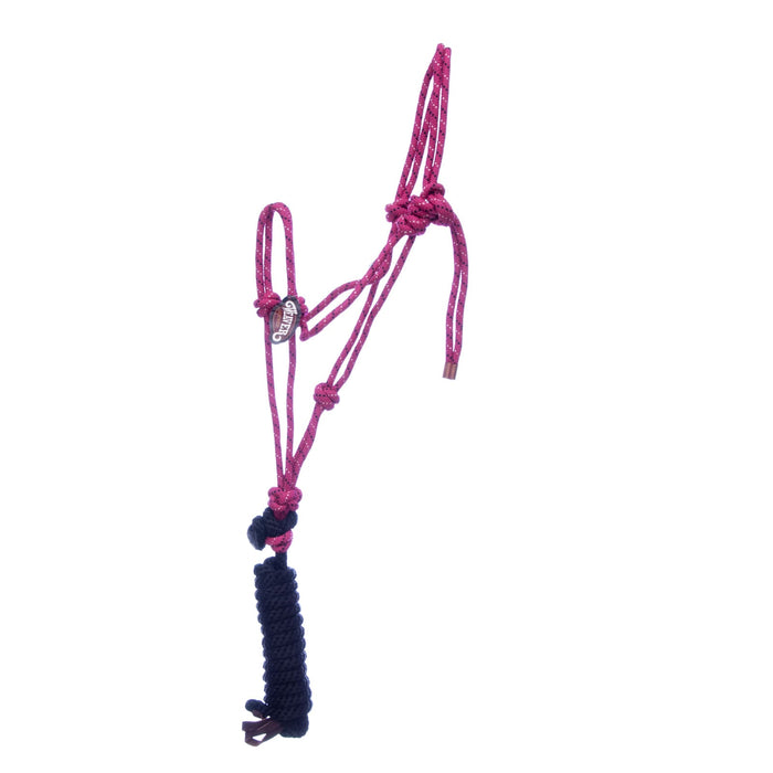 Hand-knotted from a continuous piece of 3/8" poly rope with a double noseband and crown strap. Horse lead measures ½" x 10'.
