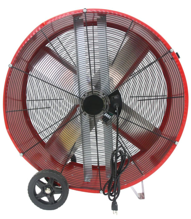 The Maxx Air 30" Direct Drive Barrel Fan has a thermally protected 2-speed motor pushing up to 5,500 CFM of airflow. It's great to help keep people and animals cool or to dry water-damaged areas. The built-in wheels and a handle make for easy portability.
