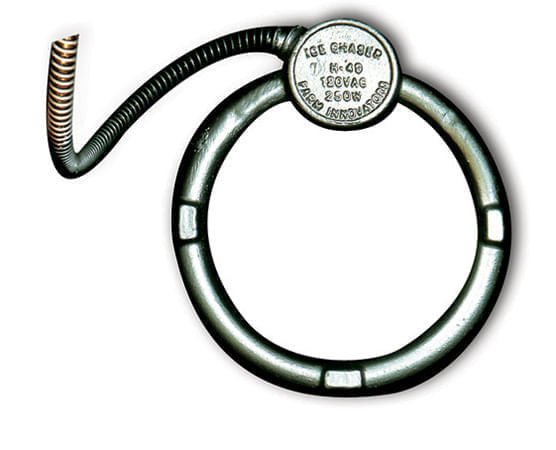 Cast Aluminum Bucket De-icer. This unit is safe in any bucket due to the Cast Aluminum design. Cast Aluminum design dictates safety, durability and efficiency. Anti-Chew cord protector for safety around animals. Thermostatically controlled to operate only when necessary.