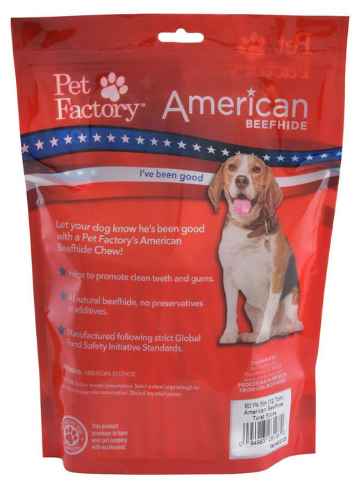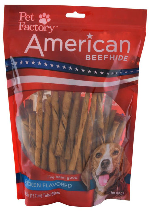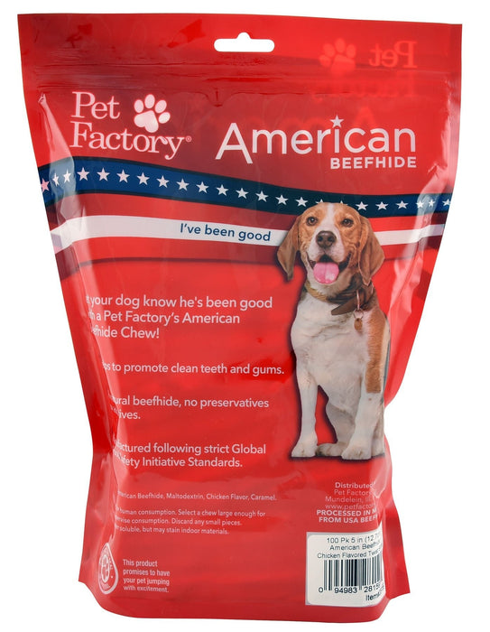"Let your dog know he's been good with Pet Factory's American Beefhide Chews!"