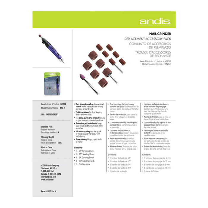 The Andis Nail Grinder Accessory Pack is the perfect companion for your Andis Nail Pro 2 Speed Pet Nail Grinder, designed for use with any size or breed of cat or dog. This comprehensive pack includes:
