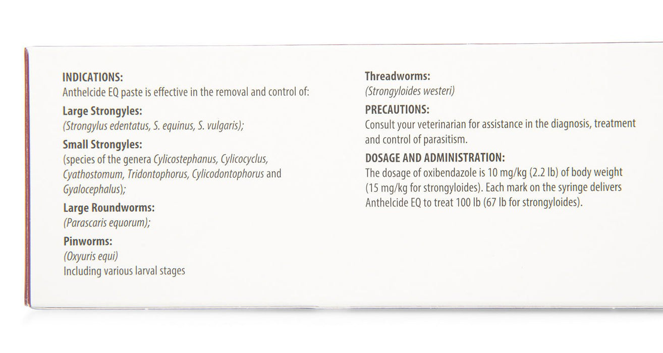 Anthelcide EQ Horse Wormer Paste aids in the treatment against large & small strongyles, large roundworms, pinworms and threadworms.