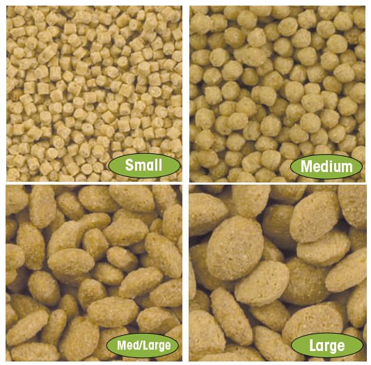 Available in Small, Medium, Medium/Large, and Large pellet sizes: