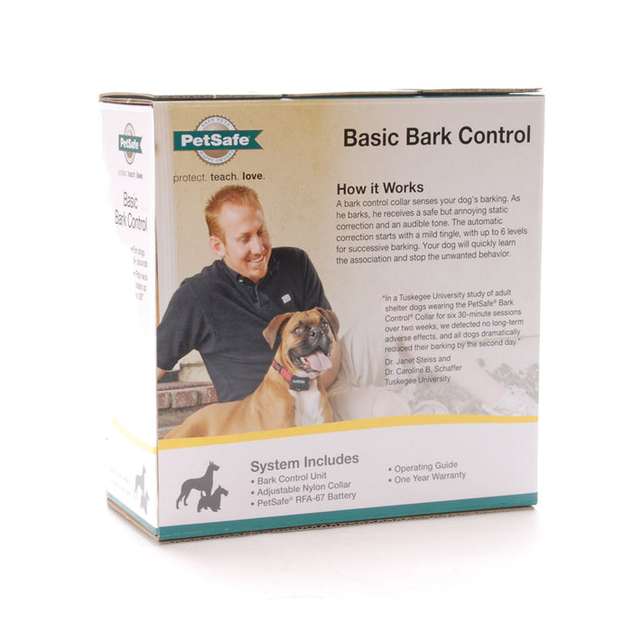 A PetSafe Bark Control collar senses your dog's barking and delivers a safe, but annoying static correction and an audible tone. The collar provides progressive levels of stimulation starting with a mild tingle, with up to 6 levels for continual barking. If your dog continues to bark, the static correction automatically increases to the next level until he stops. Your dog will quickly learn the association and stop the unwanted behavior.