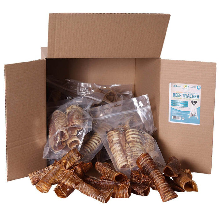 These Premium 6" Beef Trachea Dog Chews feature glucosamine and chondroitin occurring in a natural form which provides additional health benefits. They are 100% digestible dog chews made from all natural, 100% premium beef.