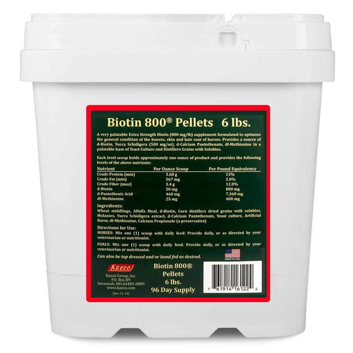 Same effective formula as the Biotin 800 Powder in a convenient, easy-to-feed pelleted form.