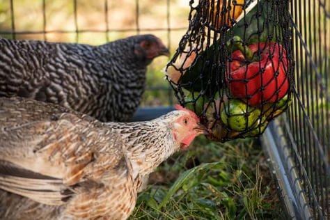 Designed specifically for poultry, this American made chicken feeder is the perfect boredom buster. The Busy Bag is great for fresh produce, scraps, and other healthy treats for chickens. The Busy Bag keeps chickens focused on working for food instead of picking on coop mates. Safe and gentle on beaks, the Busy Bag won't cause beak sores like metal suet cages and other chicken feeders. Comes with a heavy-duty carabiner clip. Ideal for chickens, turkeys, ducks and geese.