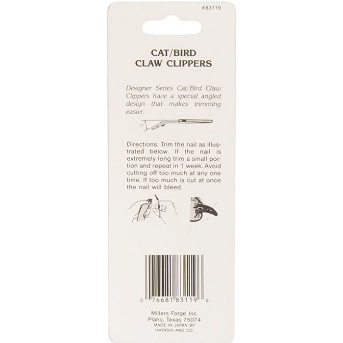The Designer Series Cat/Bird Claw Clipper is specially designed with an angled shape to make trimming your pet's nails easier and more precise. Made with high-quality Japanese stainless steel, it features comfort grip handles for better control. This small-sized clipper, perfect for cats, birds, and other small animals, measures 3.5" in length, making it the ultimate nail scissor for delicate grooming tasks.