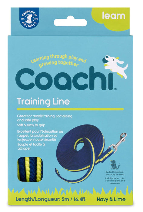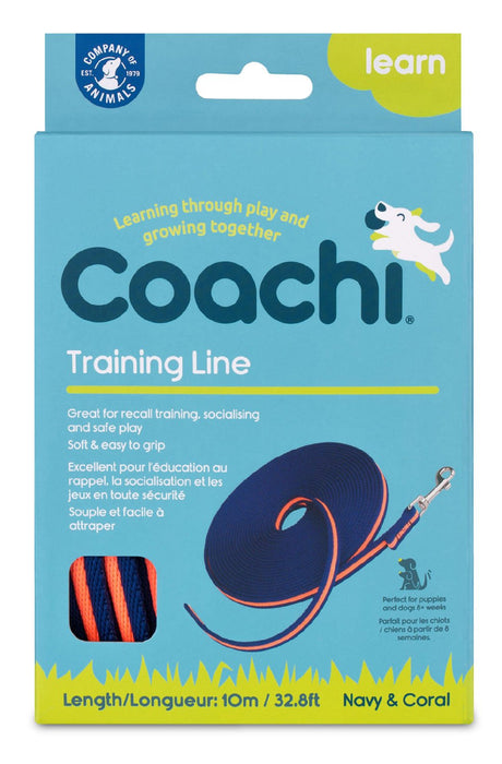 The Coachi Training Line, is great for safe training outdoors. It allows you to give your dog more freedom whilst keeping control in new situations, perfect for puppies, newly acquired and nervous dogs. An essential accessory, the training line allows you to safely practice your recall when out in open spaces. The perfect training accessory for outings in a public place, the line allows safe and controlled socialization for puppies, newly acquired or nervous dogs. The attractive 3 strand padded webbing makes the Coachi Training Line comfortable to hold and easy to manage and grip. Stops chasing, running off and is designed for recall training.