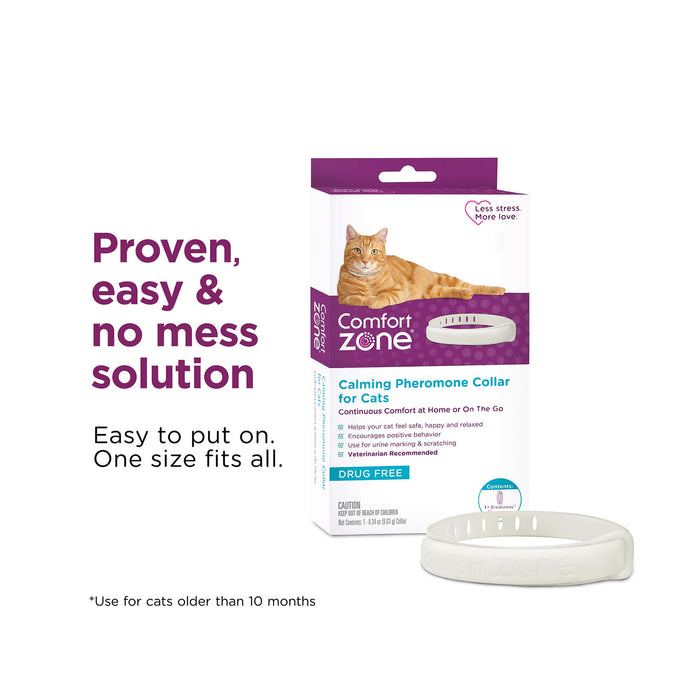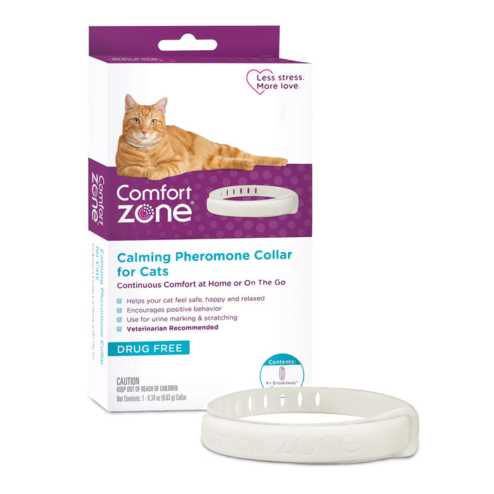 Comfort Zone Cat Calming Pheromone Collar, Anxiety & Stress Relief Aid, Breakaway Design, White
