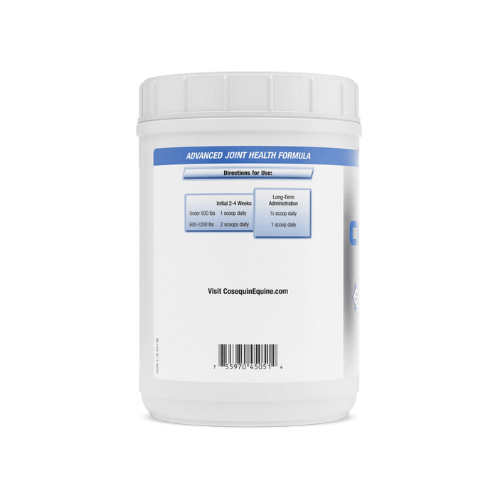Cosequin is the #1 veterinarian recommended joint health supplement brand*. Cosequin ASU Plus is veterinarian formulated with avocado/soybean unsaponifiables (ASU), glucosamine, chondroitin sulfate, methylsulfonylmethane (MSM), boswellia serrata extract, green tea extract and HA to provide joint health support for equine athletes regardless of discipline or performance level. When performance matters, choose Cosequin. *Survey conducted among equine veterinarians who recommended oral joint health supplements.