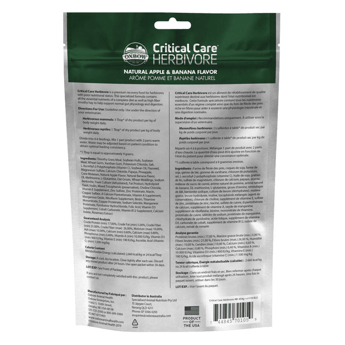 Oxbow Critical Care Herbivore Diet, Apple Banana