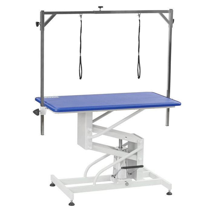 The Davis Deluxe Hydraulic Grooming Table with Cushion Top is built to meet the demands of professional grooming. With a sturdy, heavy-duty design and a cushioned, easy-to-clean surface, this table offers both comfort and reliability. The hydraulic lift allows for hands-free height adjustment from 20 1/2" to 39", reducing strain and enhancing grooming efficiency.