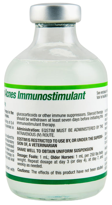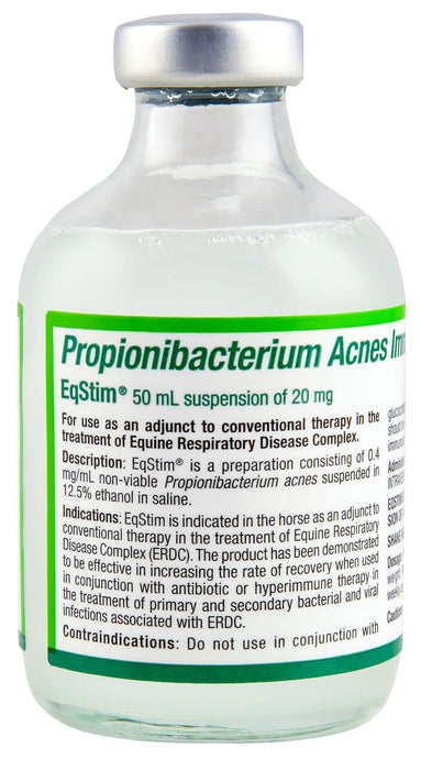 EqStim has been demonstrated to be effective in increasing the rate of recovery when used in conjunction with antibiotic or hyperimmune therapy in the treatment of primary and secondary bacterial and viral infections associated with equine respiratory disease complex. Proven to provide rapid recovery from bacterial and viral respiratory infections. Safe for horses, ponies, and foals.