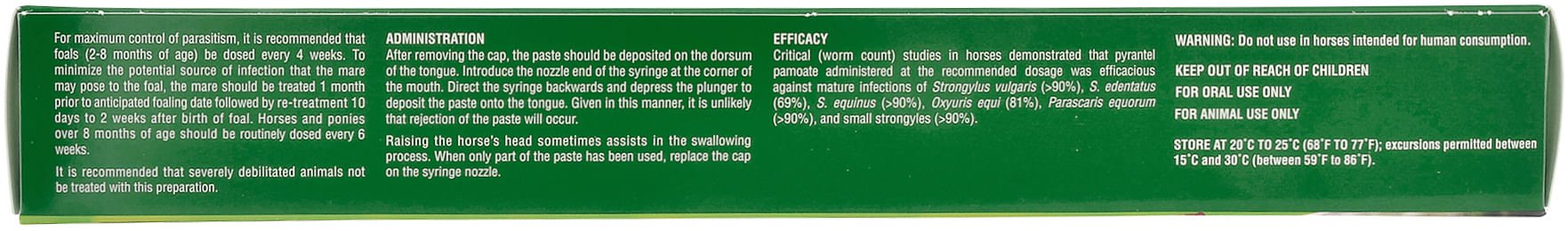 Horses and ponies over 8 months of age should be treated every 6 weeks. Mares should be treated one month before foaling and again 10 days after foaling. Foals (2–8 months of age) should be dewormed every 4 weeks. Use the calibrated oral syringe to ensure accurate dosing based on body weight. Always follow label instructions or consult your veterinarian for an appropriate deworming schedule.