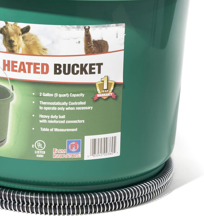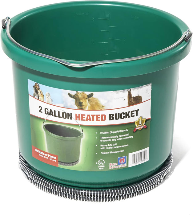 The Plastic Heated Bucket by Farm Innovators is an over-sized 2-gallon capacity which is thermostatically controlled to operate only when necessary.