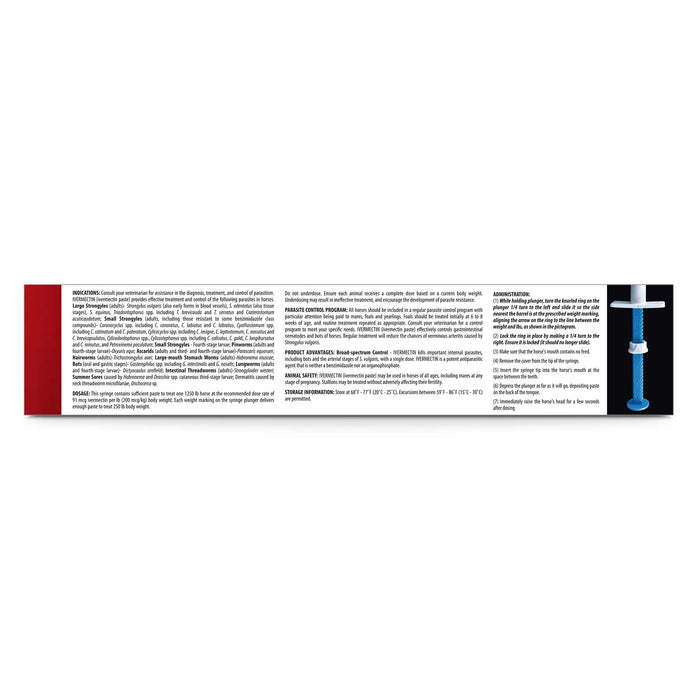 A broad-spectrum dewormer for horses used to aid in the control of large & small strongyles, pinworms, lungworms, roundworms, bots and more. This gel formula treats up to 1250 lbs in body weight, kills internal parasites and helps control 46 species and stages of worms and bots.