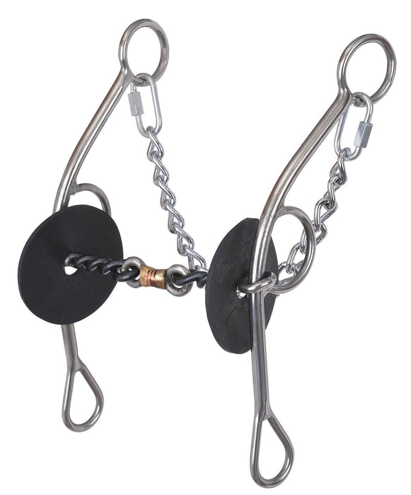 Part of the Martha Josey collection. Gag action sends a warning signal to the horse before pressure is applied. The three-piece mouth with dog bone offers additional leverage to the corners of the mouth providing a responsive feel. The 5.5" three-piece medium twist with wrapped dog bone mouth is 5/16" in diameter with 9" cheeks.