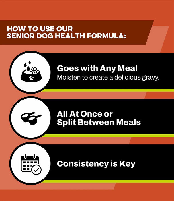 Administer with meals. If administering for the first time start with ½ recommended amount and work up to full amount over 7-10 days. Add water to create a delicious gravy.