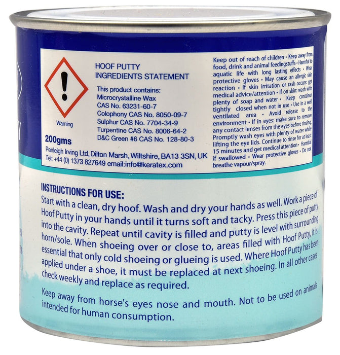 Keratex Hoof Putty is a specialized formula designed to stabilize hoof cavities and create a waterproof seal, protecting hooves from fungal and bacterial infections. This unique, malleable wax effectively seals hoof cavities, preventing grit and stones from entering and causing further damage.