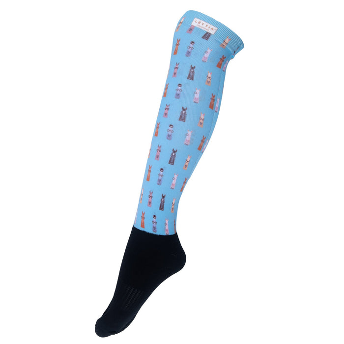 The Lettia boot socks are made to match the Lettia All Purpose Pads perfectly. The smoothing top fits nicely under half chaps and tall boots. The addition of a padded foot bed makes for the most comfortable boot socks you will ever own.