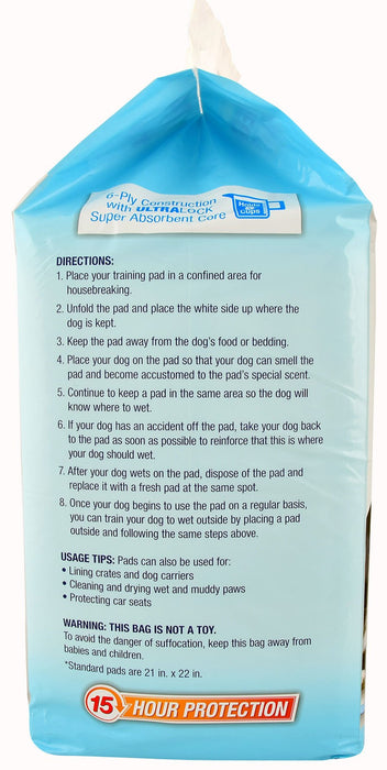 Lil' Squirts Training Pads by Ruffin' It is perfect for large dogs or multi-dog homes. At 36" x 36" they're almost 3X larger (sq. inch) than standard pads. The 6-ply Ultralock Super Absorbent Core holds up to 9 cups of liquid. That is 5 times the amount a 50lb dog would eliminate in 15 hours. The pads are treated to attract dogs and include odor eliminators.