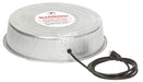 Made of heavy-duty, rust-resistant galvanized steel. Cord should be protected from animals and used with a Ground Fault Circuit Interrupter (GFCI) protected outlet. Unit will not draw electricity until temperature drops below freezing. Uses less than 1 amp per hour. 16.25-inch diameter by 3.687 inch high.