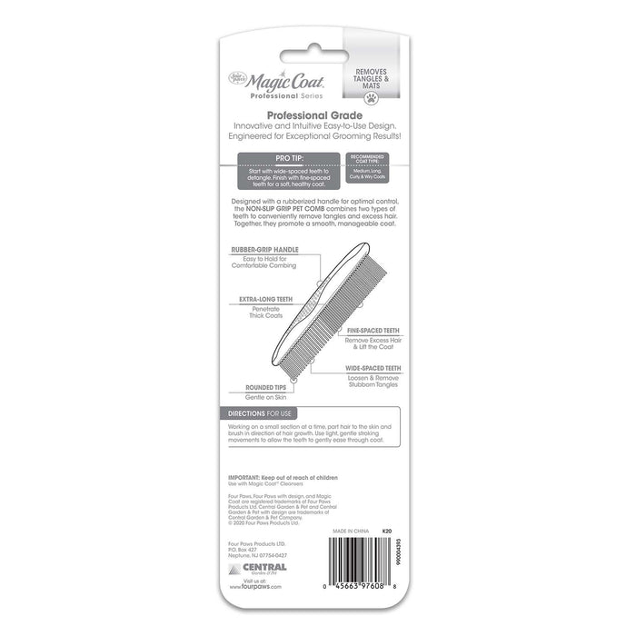 With a comfortable rubber-grip handle, the Magic Coat Non-Slip Grip Pet Comb is designed to provide optimal control while removing tangles and excess hair.